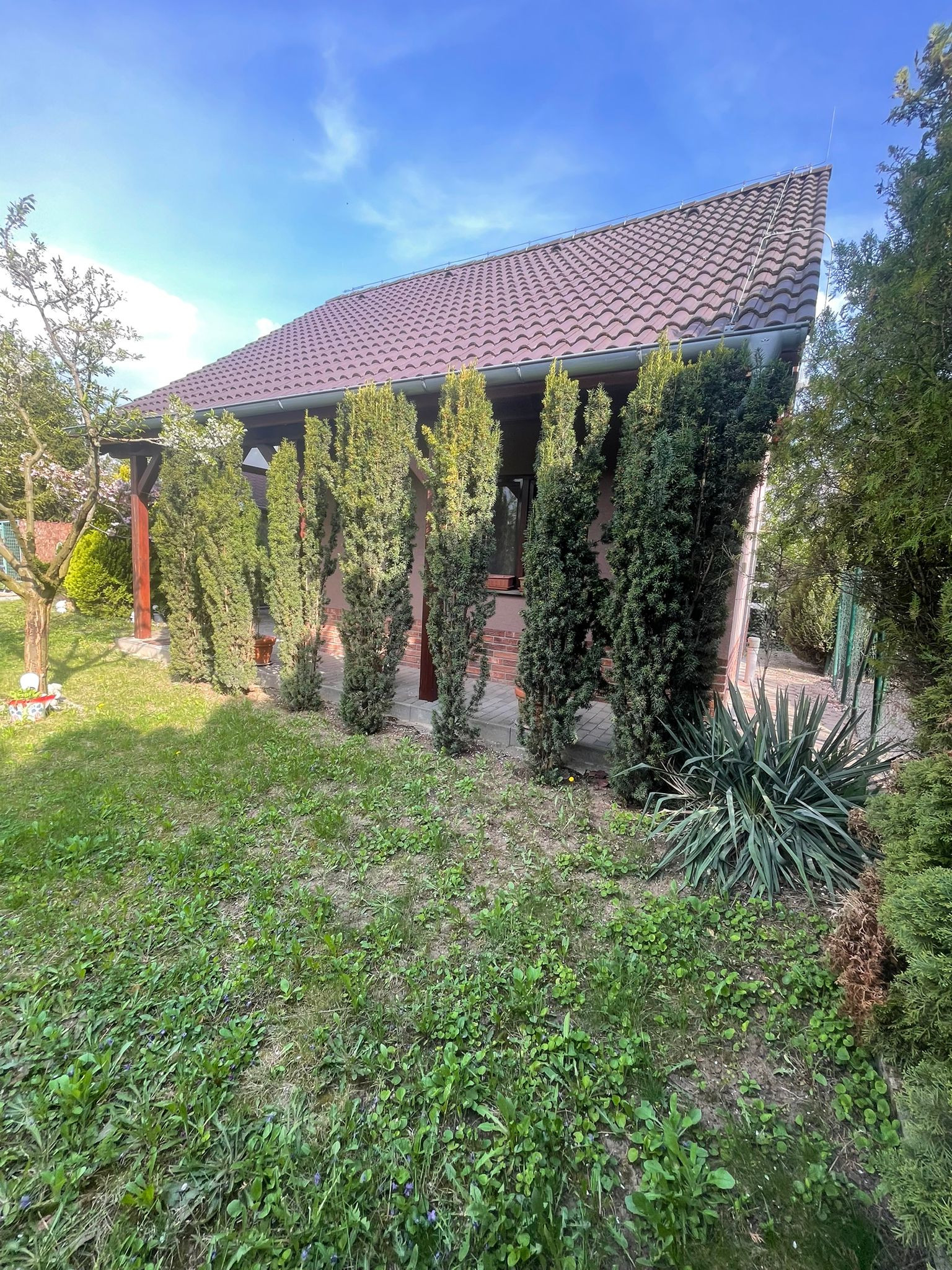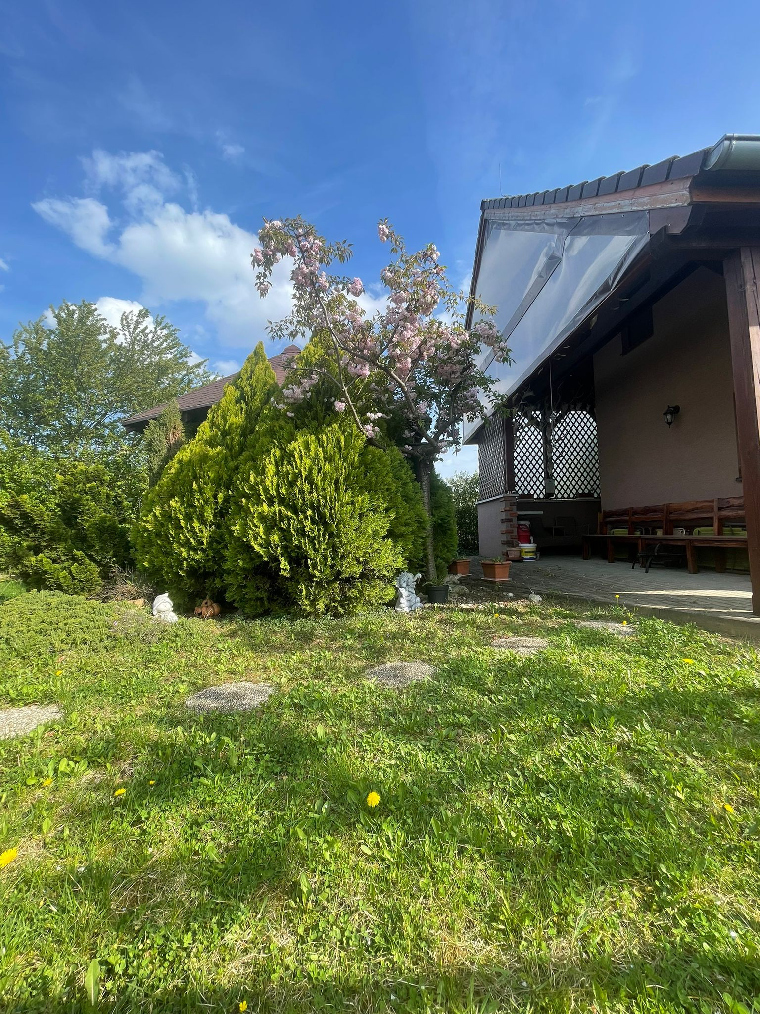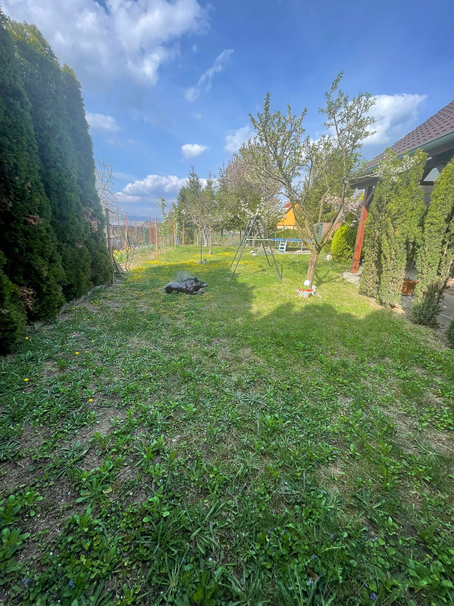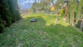 Záhrada je priestranná, no zároveň útulná – ideálne miesto na relax, grilovanie alebo pestovanie vlastných plodín.
