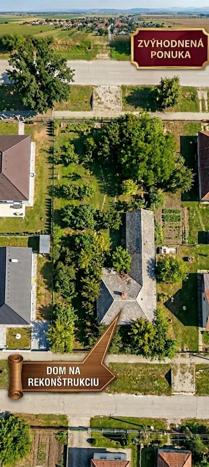 Lokalita: Ondrejovce – kľudná ulica. Celková výmera pozemku: 2 280 m². Zastavaná plocha a nádvorie: 762 m². Záhrada: 1 518 m². Stavba: Starší rodinný dom so súpisným číslom (vhodný na rekonštrukciu alebo odstránenie).
