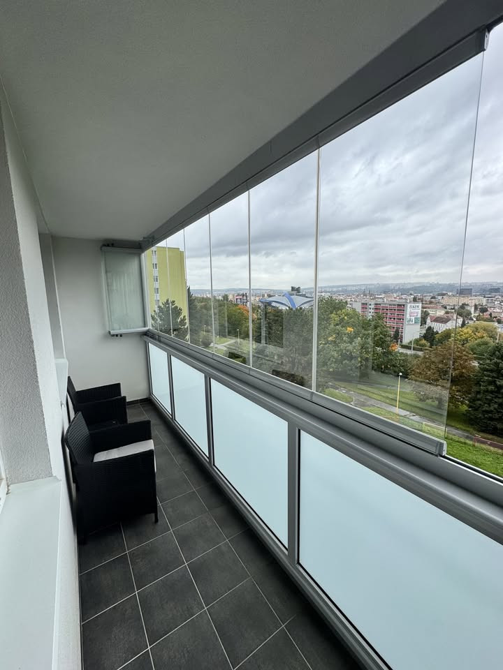 - Obývacia izba spojená s kuchyňou a výstupom na zasklenú loggiu (6 m²) s krásnym výhľadom na mesto Košice