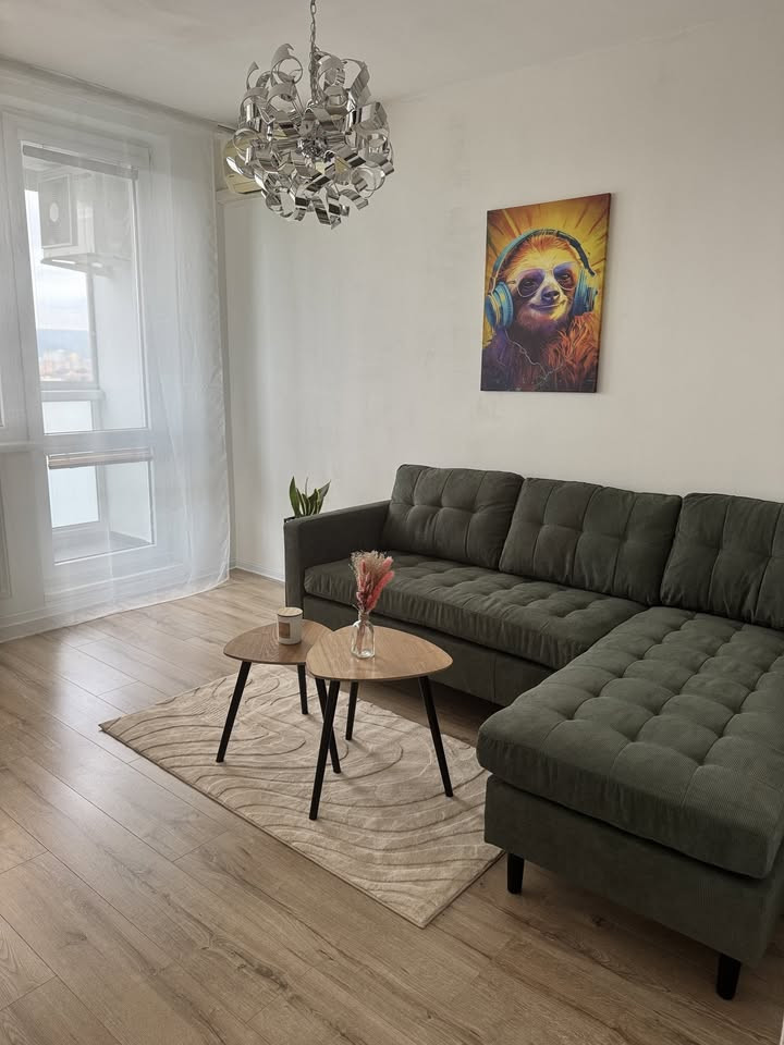 Ponúkame na prenájom moderný a zrekonštruovaný 1,5-izbový byt s výmerou 43 m² s priestrannou 6 m² loggiou, nachádzajúci sa na 3. poschodí bytového domu s výťahom.