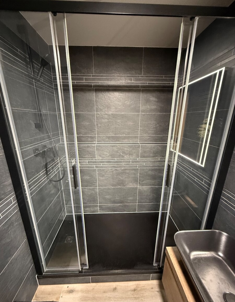 plastové veľkoformátové okná, v izbe plávajúca podlaha, kuchynská linka so spotrebičmi (indukcia, rúra, chladnička, mikrovlnka), v kúpeľni sprcha.